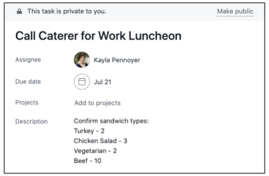 This is one of the best things I’ve done in Asana so far. Before, my professional development goals were buried in annual review documents, my personal notebook, or emails. I converted these into my own project to keep myself on track and hold myself accountable.